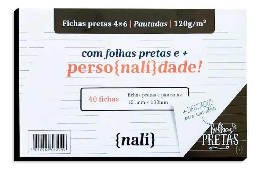 Projetadas para dar destaque às suas ideias, as fichas pretas da Nalí são perfeitas para suas canetas favoritas!